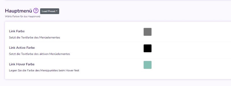 Aktuell komme ich bei dem Seitenleisten-Menü nicht weiter. Hier werden mir alle Unterpunkte z.B. mit den falschen Farben angezeigt. Ich habe unter Farben die Menü-Einstellungen gem. angehängten Screenshot konfiguriert. Weiterhin werden auch die Menü Typographie Einstellungen wie z.B. GROSSSCHREIBUNG nicht auf die Unterpunkte übertragen.