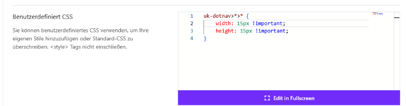 Template via CSS anpassenuk-dotnav > * > * { width: 15px !important; height: 15px !important; border-radius:0 !important }