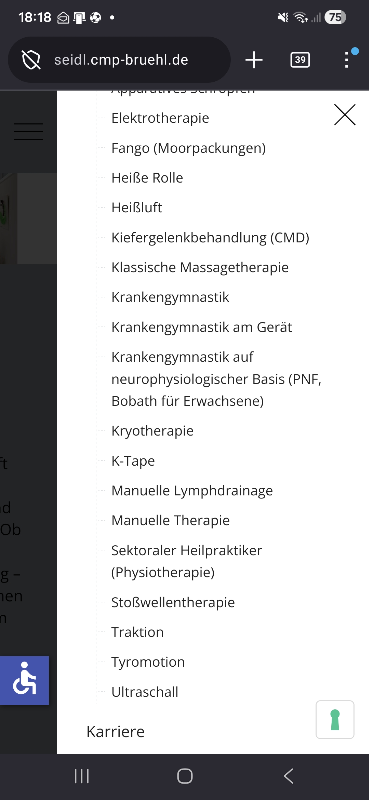 ABER es gibt noch 1 PROBLEM: auf dem Handy (Samsung S24plus) werden die letzten beiden Menü Items nicht angezeigt. Nach ;menu item "Karriere" kann man nicht mehr weiter scrollen. Es fehlen "Team" und "Kontakt"