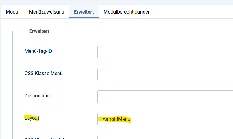 Das sieht so aus, dass Sie im Modul beim Layout wohl nicht AstroidMenue ausgewählt haben: