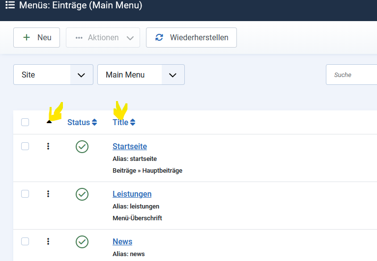 1. ich dachte (Denkfehler meinerseits), das Astroid Drop Down Menü überschreibt die Joomla Menü Einstellungen, sprich, die Reihenfolge. Das habe ich nun hingekriegt.
