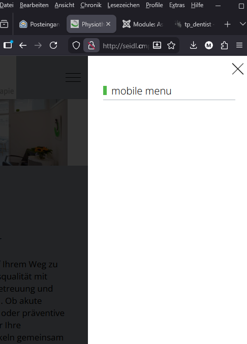 2. Habe nun in den template Options das Offcanvas aktiviert. und so eingestellt, dass es nur auf small devices angezeigt wird. Das Problem ist jedoch, dass bei der mobilen Ansicht der Content, sprich das Menü nicht erscheint. Man sieht den Modultitel und das war's. Sh Bild.