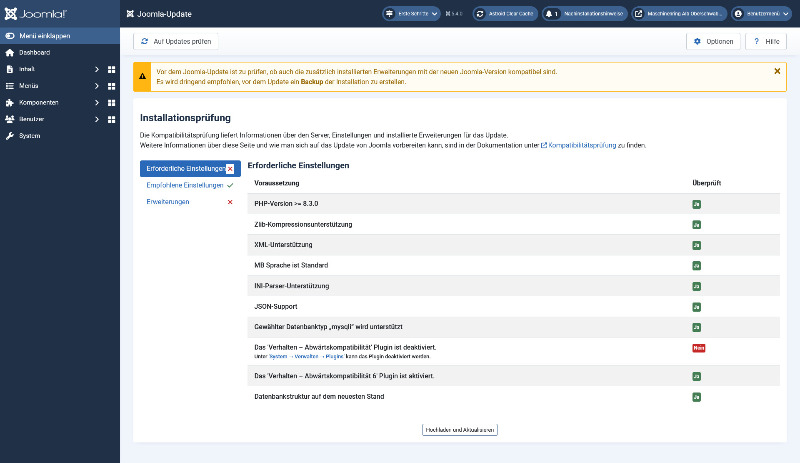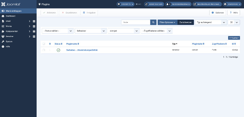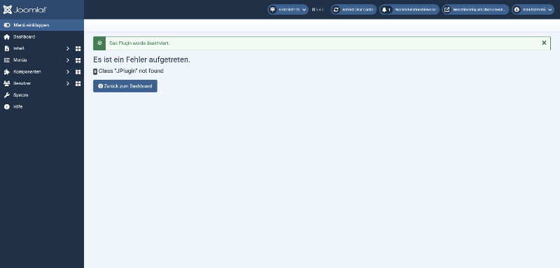 wenn ich das Abwärtskompalität Plugin deaktiviere ist es nicht mehr möglich im Backend zu navigieren. Joomla funktieoniert nicht mehr. Siehe Fotostrecke.