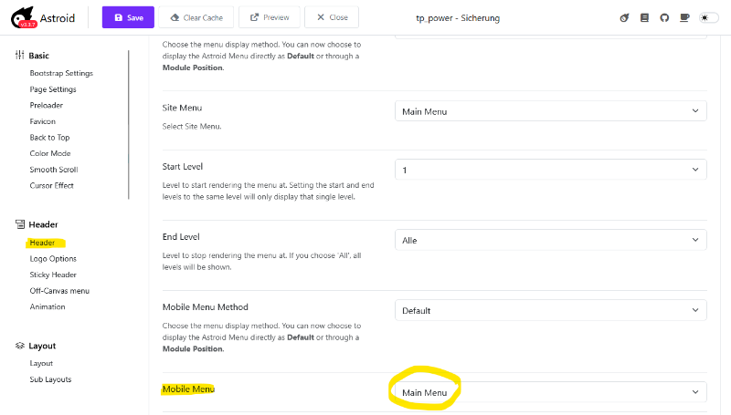 Ist denn auch das Menü als mobiles menu zugeordnet? Lesen sie bitte hier zu die Dokumentation, Header