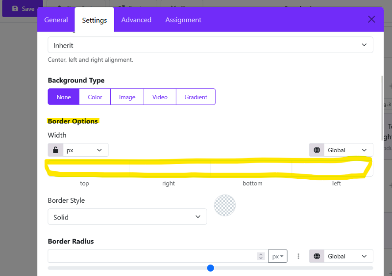 In den Settings Border Options die gewünschten px eintragen.
