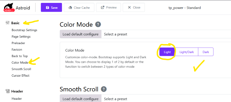 - Colormode steht auf light - wie kann ich denn Änderungen im dark Mode vornehmen / finden ? oder den Color Mode ein/ ausschalten ?