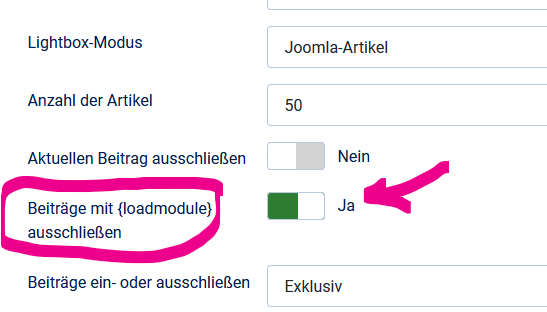 Option Beiträge mit (loadmudul] ausschließen: