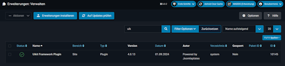 Nach dem Löschen wird die Erweiterung in Joomla auch nicht mehr angezeigt: