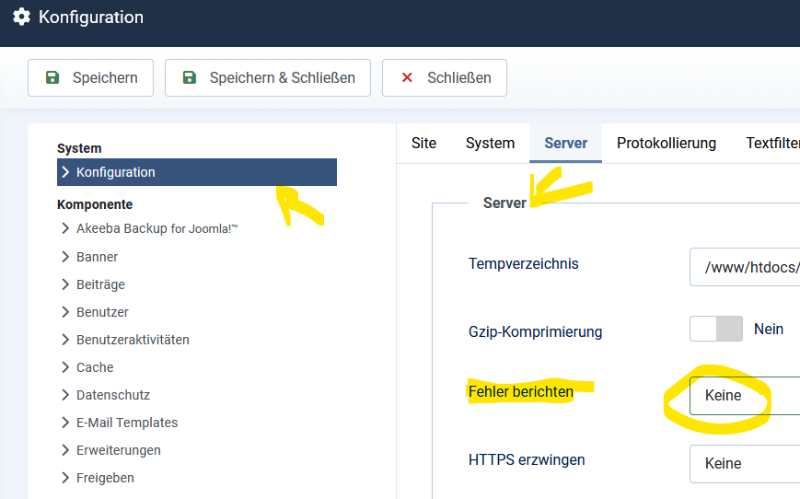 Das scheint nur ein Hinweis zu sein. Stellen Sie die Anzeige im Backend von Joomla auf keine Fehler anzeigen um.