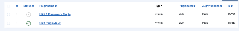 Ulkit 3 Framework Plugin und Ulkit Plugin J4 J5 als potentiell problematisch markiert.