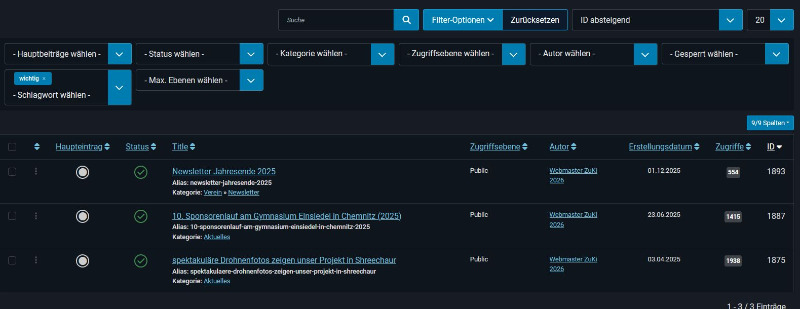 Article Grid 2.6 Version vom 22.2.26 (mein Speicherdatum) zeigt beim Filter nach Schlagwort einen Artikel mehr an (siehe Bild 2.6.a) als Version 2.6. vom 18.4.26 (Speicherdatum) im Bild 2.6.b . Vielleicht habe ich etwas falsch gemacht, aber das ist eine Inkompatibilität zwischen euren Versionen und macht die Fehlersuche schwer, wenn die Nummern dieselben sind.